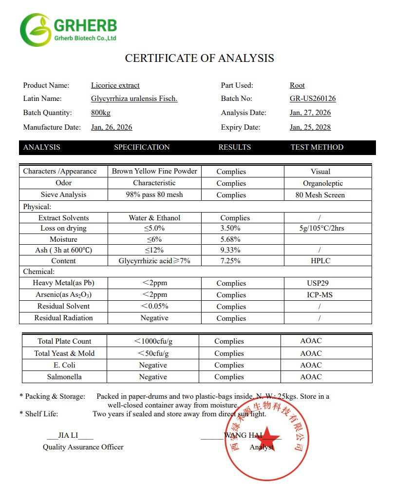 Glycyrrhizic acid, the core component of licorice root extract, is known in Chinese as “甘草酸” (Gancao Suan), also referred to as “甘草甜素” (Gancao Tiansu, Glycyrrhizin) or “甘草皂甙” (Gancao Zaodai, Glycyrrhiza Saponin). It is a natural active ingredient extracted from the rhizome of the licorice plant, characterized by high sweetness, multiple pharmacological activities, and a wide range of applications.